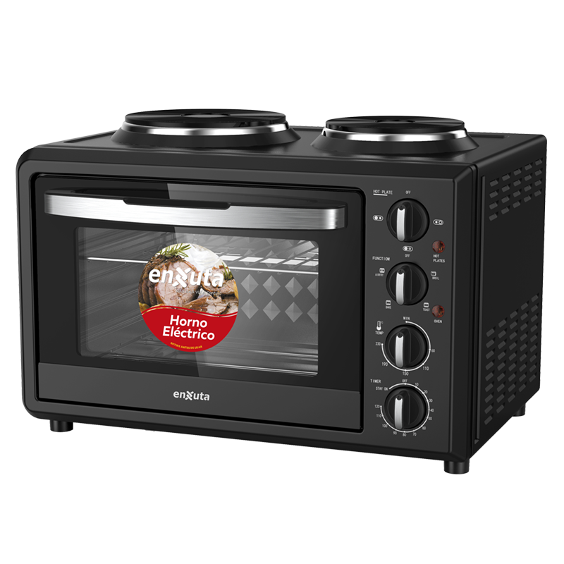 Descubre la comodidad y eficiencia del Horno Eléctrico HENX032DN de Enxuta. Con su combinación de horno y discos eléctricos, este versátil electrodoméstico te permitirá preparar comidas completas con facilidad y precisión. ¡Transforma tu experiencia culinaria y ahorra espacio en tu cocina con este ingenioso 2 en 1!